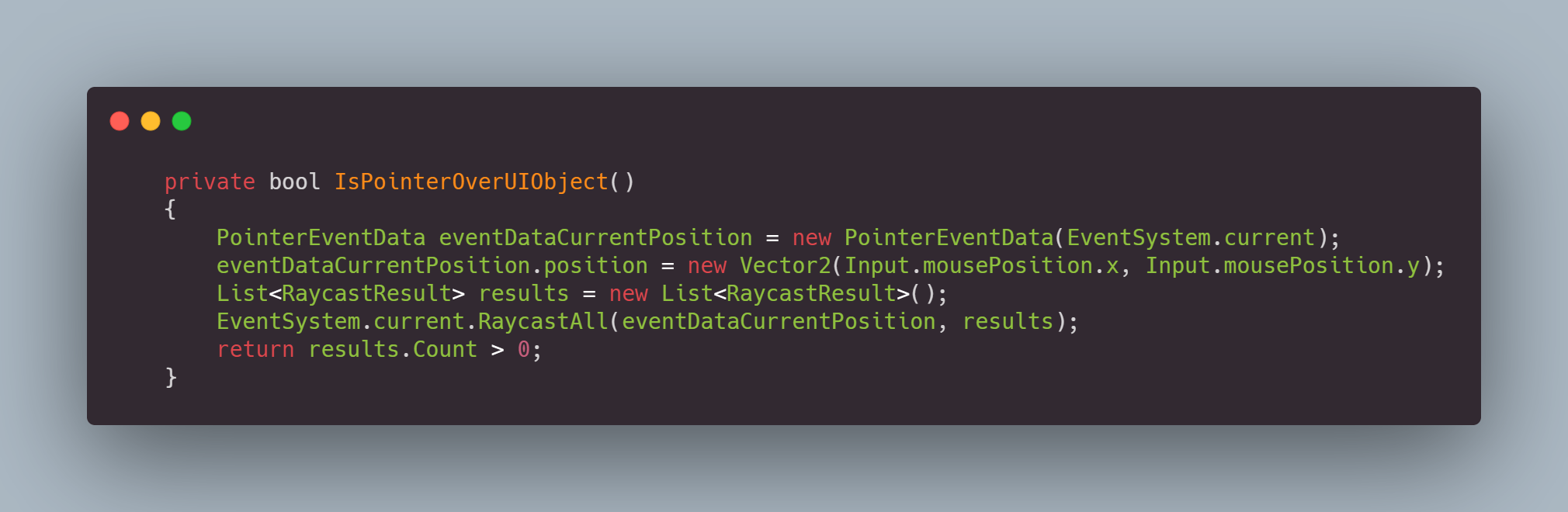 private bool IsPointerOverUIObject()