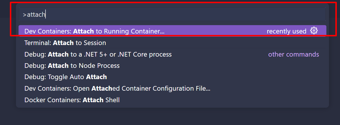 ctrl + shift + p 누른 후 attach를 검색하면 나온다.