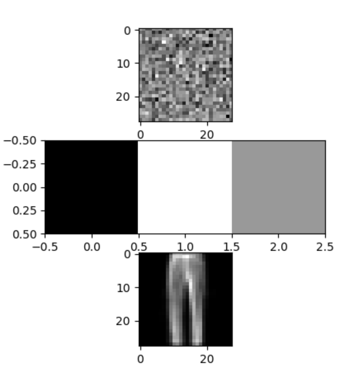 - rand()를 통해 모델에 넣은 28x28 노이즈 입력은 0~1사이의 값의 범위를 가진다.