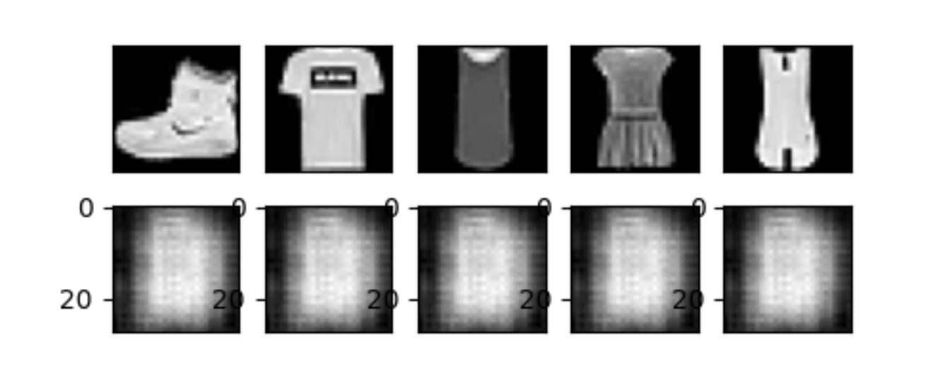 학습코드를 살펴보면 decoding된 값과 원본 이미지의 값이 같아지도록 loss를 취한다. 이 말은 어떤 결과든 y값(원본 이미지)이 나오도록 학습한다는 것인데, 결과적으로 latent로 값이 압축만 된다면 fashion mnist의 결과가 나올 것이라고 생각한다.