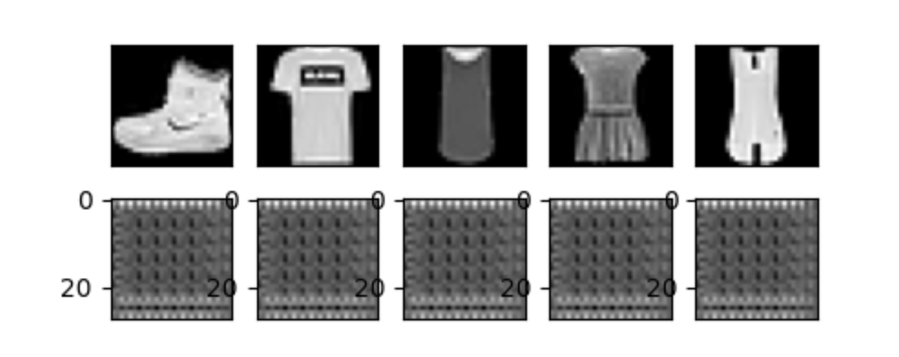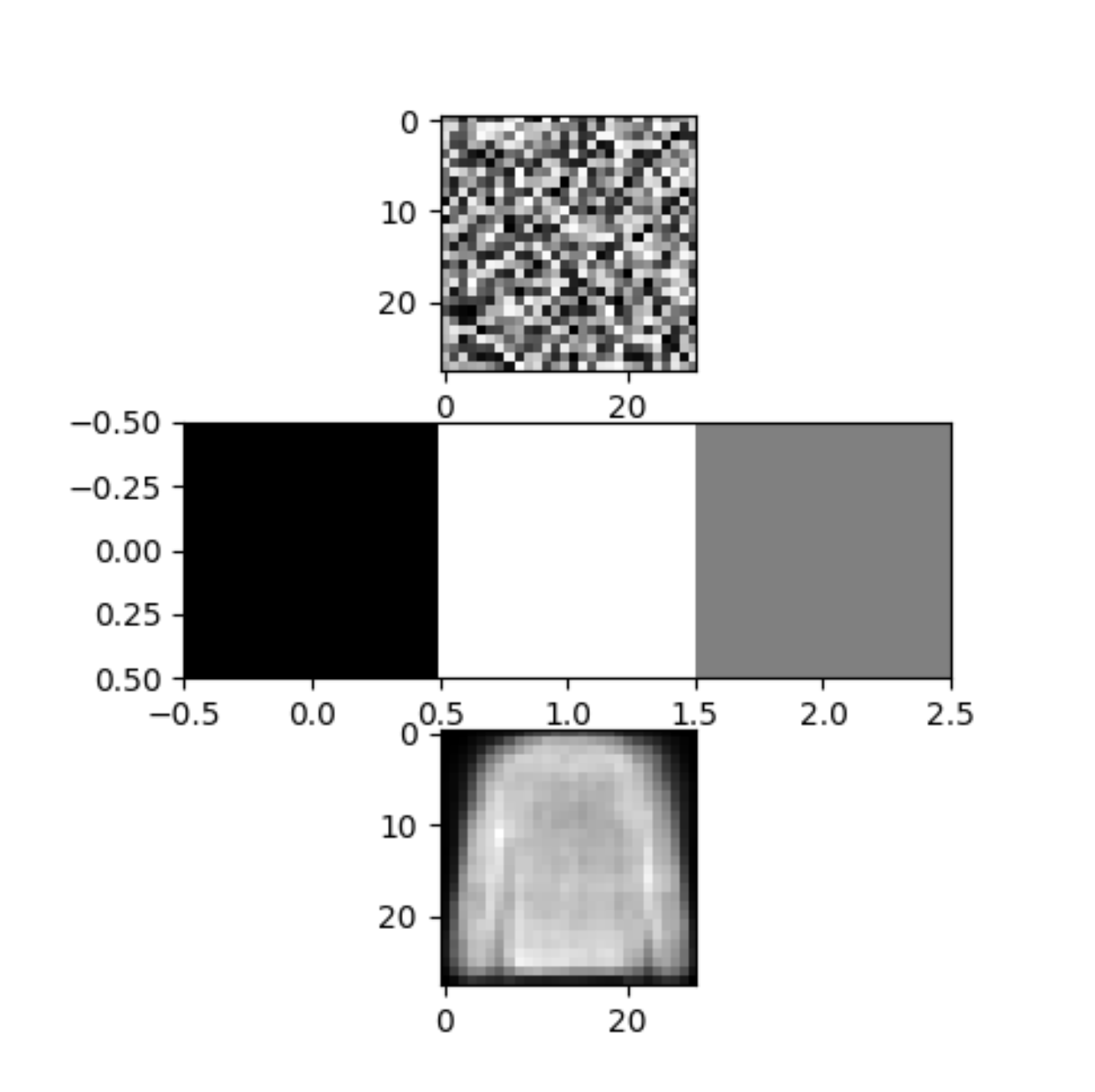 최상단 이미지의 노이즈는 torch.rand()로 만든 28x28의 uniform한 noise이다. torch.randn()을 통한 28x28 gaussian noise로도 테스트를 해보았지만, 두 노이즈 모두 다 encoding후 decoding이 되면 fashion_mnist의 이미지가 나오게 된다.