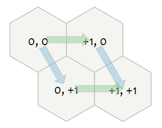 Hex(+1, 0), Hex(+1, -1), Hex(0, -1),
