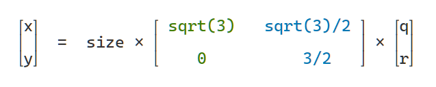var x = size * (sqrt(3) * hex.q + sqrt(3)/2 * hex.r)