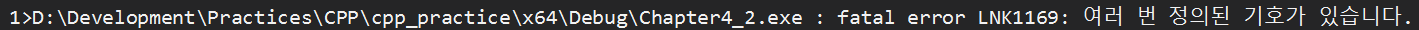 그러면 main.cpp와 test.cpp에서 양쪽에서 초기화를 한다면? 다음과 같은 에러가 발생한다.