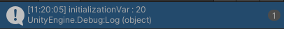 Start메소드가 변수 초기화 순서에서 4번째에 해당하기 때문에 값이 20으로 출력되는 것을 확인할 수 있습니다. (물론, 유니티 스크립트 라이프사이클에서 Awake뒤에 동작하기 때문이기도 합니다.)