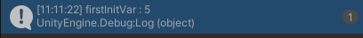 Awake가 초기화 순서의 3번째에 해당되기 때문에 가장 마지막에 초기화된 10의 값이 Log에 찍히는 것을 확인할 수 있습니다.